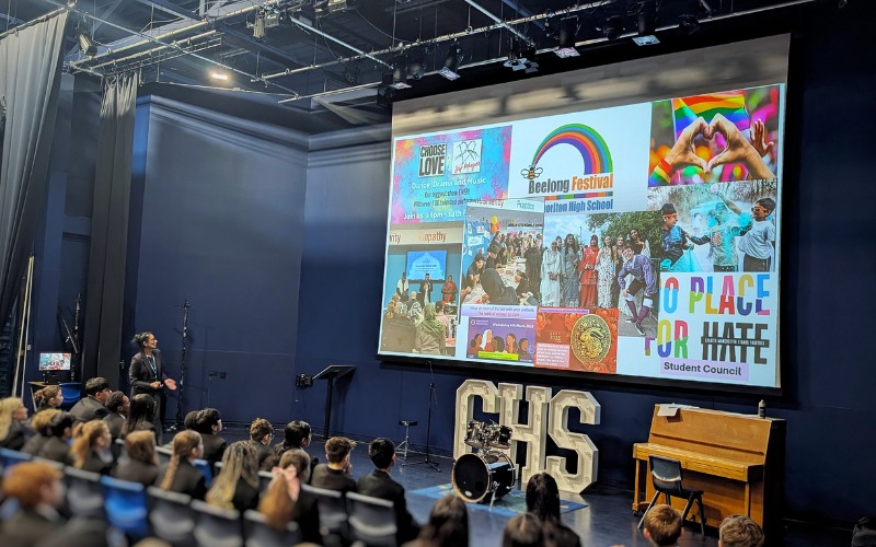 The assembly highlighted the importance of building an inclusive community. We spoke about the 9 Protected Characteristics (A person's Age, Disability, Gender Reassignment, Marriage and Civil Partnership, Pregnancy and Maternity, Race, Religion or Belief, Sex, and Sexual Orientation) and the UN's #NoToHate campaign, reminding students that it's vital to respect everyone's unique identity. This is a crucial part of our community, where we all look out for one another.