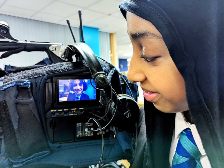 We were (super) excited to welcome Granada Reports ITV into our Library to film a news segment for the launch of the ReadMCR Transition book, Quiet Storm by Kimberly Whittam. Keith Bardsley from Manchester City Council returned to speak with our Year 7 ‘Pupil Voice’ students and thank them for their helpful feedback during a Transition meeting earlier this term.